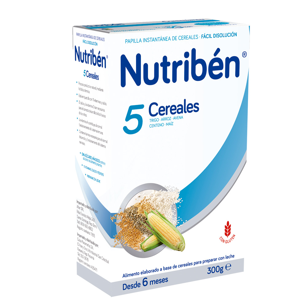 Contiene una mezcla de cinco cereales: trigo, arroz, avena, centeno y maíz.