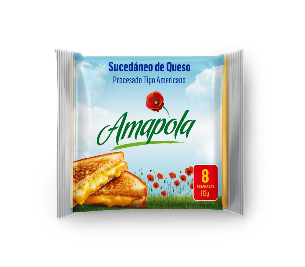 Queso Amapola 8 Rebanadas es un queso tipo americano, suave y cremoso, ideal para sándwiches, hamburguesas y tostadas. Viene en empaque práctico con 8 rebanadas individuales, listo para servir.